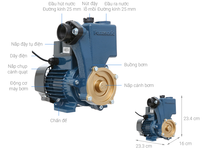 -Máy bơm đẩy cao Panasonic GP-250JXK được thiết kế với kiểu dáng đơn giản, gọn nhẹ, mạnh mẽ, tiết kiệm điện, lắp đặt và bảo dưỡng dễ dàng. Sử dụng thích hợp cho nhiều mục đích, cho nhà dân dụng, nơi có nguồn nước yếu, hoặc bơm nước lên bồn chứa sân thượng. với tổng độ cao tối đa lên đến 38m, thích hợp sủ dụng cho các tòa nhà từ 4 đến 5 tầng trong khoảng 15-20m. Nguyên liệu thiết kế bằng đồng có khả năng chống ma sát, chịu nhiệt cao, vận hành êm, độ ồn thấp, đảm bảo dòng nước bơm ổn định.