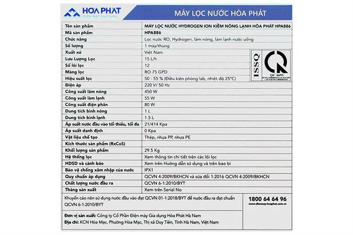 - Cụm lõi chức năng Hòa Phát thế hệ mới Ultra H8.0 giúp nâng cao chất lượng nước chảy qua lõi, tăng lưu lượng lọc chảy qua các lõi, giảm thiểu tắc nghẽn hệ thống lọc.
