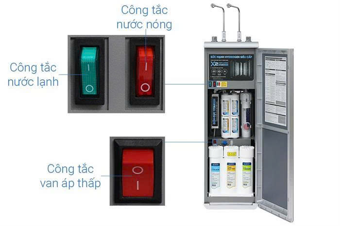 Số vòi: 2 vòi, 4 chế độ nước: nóng - lạnh - tinh khiết - hydrogen ion kiềm