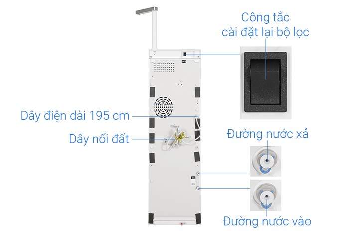 Bảo quản tiệt trùng Công nghệ khử trùng bằng đèn UV tiêu diệt đến 99,9% vi khuẩn gây hại. Kết hợp với đèn diệt khuẩn UV, đảm bảo nước được lưu trữ trong môi trường an toàn lâu dài, không bị nhiễm độc hay tái sinh vi khuẩn.