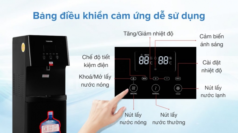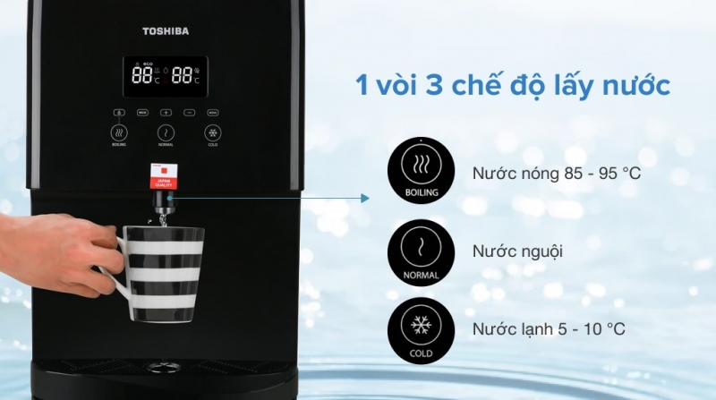 - Điều chỉnh nhiệt độ nước giúp đám ứng nhu cầu sử dụng của mọi người. Từ đó, người dùng có thể chủ động hơn trong việc sử dụng thiết bị. Đặc biệt, cây nước ứng dụng công nghệ làm lạnh Block giúp quá trình làm lạnh nhanh hơn.