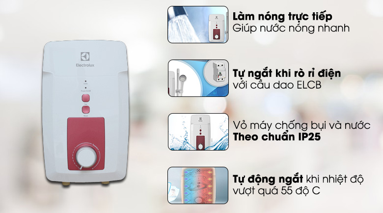 Ngoài ra, chiếc máy nước nóng trực tiếp Electrolux này còn được trang bị cảm biến nhiệt giúp đảm bảo nhiệt độ nước tại đầu ra luôn ổn định ở mức người dùng mong muốn, phòng tránh gây bỏng. Bạn sẽ hoàn toàn yên tâm mỗi khi đứng dưới vòi sen của máy.
