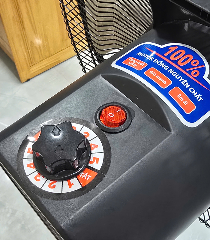- Phần đế đúc nặng 3.8kg giữ cho quạt không bị nghiêng ngả.