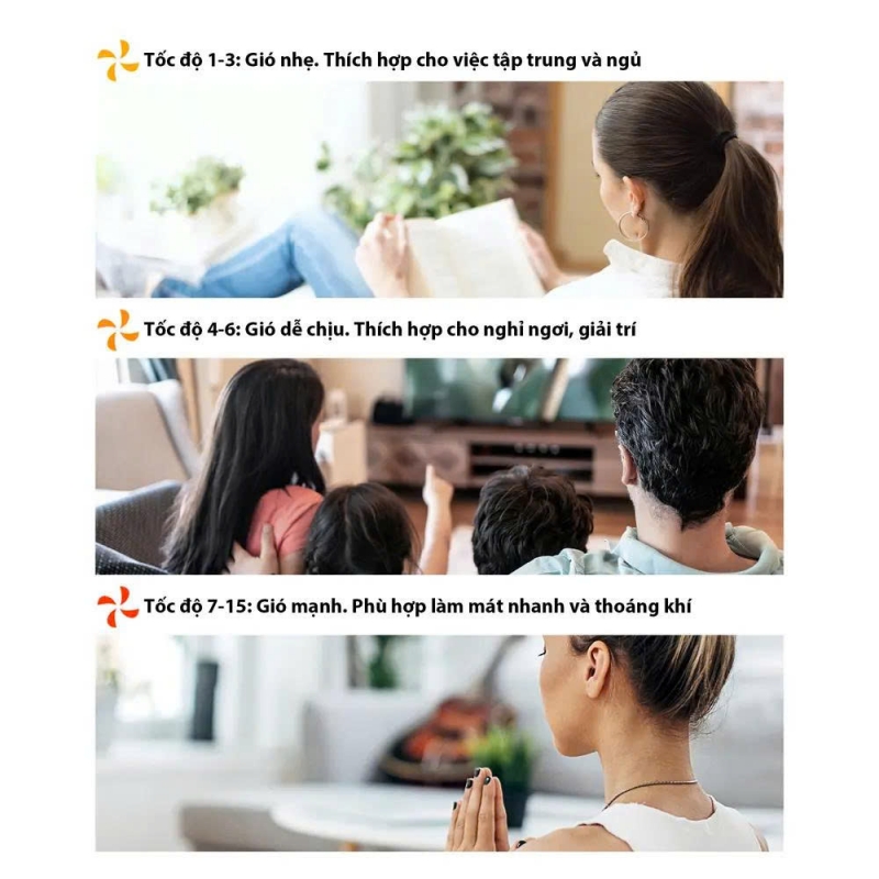 - Đa dạng độ gió,làm mát tối ưu với 15 cấp độ gió linh hoạt, từ làn gió nhẹ nhàng thư giãn đến luồng gió mạnh mẽ sảng khoái, phù hợp từng nhu cầu khác nhau.