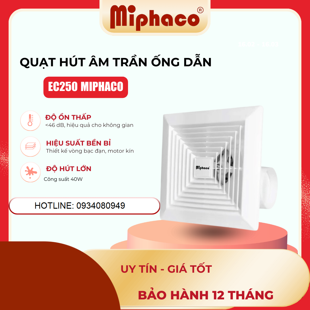 Quạt hút âm trần có ống Miphaco EC-250