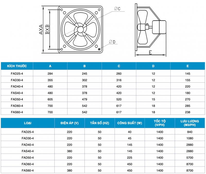 - Độ ồn thấp, lưu lượng gió lớn, vận hành ổn định, dễ dàng lắp đặt